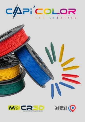 Le filament 3D CAPI’COLOR 500g est une véritable révolution dans l’univers de l’impression 3D. Il ne se contente pas d’imprimer des objets : il permet aussi de dessiner et marquer différentes surfaces comme le papier, le carton, le bois, la pierre, le plastique et certains métaux. Grâce à sa formulation unique à base de cire pigmentée, il dépose de la couleur par frottement tout en gardant les doigts propres.