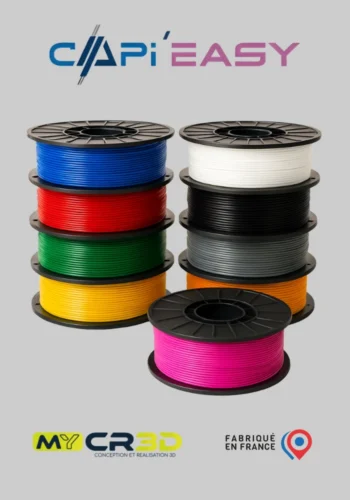 Le filament PLA CAPI’EASY est un filament 3D premium, 100 % fabriqué en France, à Saint-Marcellin, par CAPIFIL, spécialiste de l’extrusion plastique depuis plus de 25 ans. Ce filament est de très haute qualité de fabrication, garantissant ainsi une fiabilité exceptionnelle et un résultat final d’impression de grande qualité.