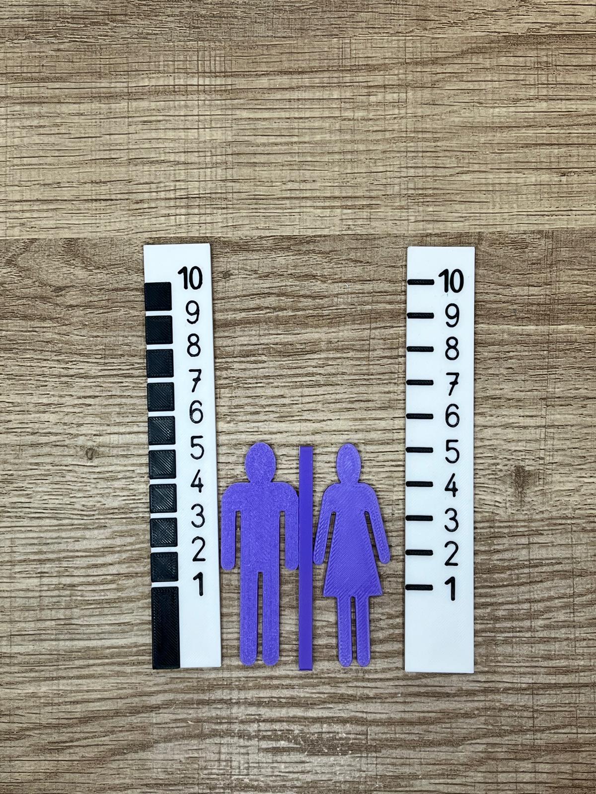 Ce kit contient 10 silhouettes homme et 10 silhouettes femme. Elles vont de la plus petite à la plus grande. Chaque série est accompagnée de 2 règles numérotées de 1 à 10, en noir et blanc. Ainsi, les enfants associent plus facilement les tailles aux chiffres et au comptage.